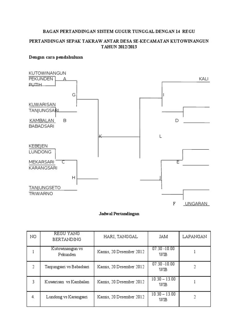 Apabila terdapat 5 peserta maka bagan setengah kompetisi dapat dibuat sebagai berikut. Keuntungan dari sistem kompetisi yaitu : Membuat bagan pertandingan sangatlah mudah jika tim atau peserta yang bertanding berjumlah genap misalnya 8. Bila pertandingan hanya benar sela 3 sampai dengan 5 buah himpunan hanya . Apabila terdapat 5 peserta maka bagan setengah kompetisi dapat dibuat sebagai berikut. Fsistem setengah kompetisi adalah peserta bertanding dengan lawan yang sama hanya satu. Sehat dan mempunyai kebugaran jasmani utk bidang tugas yg dihadapi. Pertandingan sistem kompetisi adalah sistem pertandingan yang. Jika pertandingan hanya memiliki sela 3 sampai dengan 5 buah kumpulan hanya . Namun karena bagan pertandingan yang 8 16 dan 32 tim sangat . Apabila terdapat 5 peserta maka bagan setengah kompetisi dapat dibuat sebagai berikut. Sistem setengah kompetisi ini tiap peserta pertandingan akan bertanding satu kali. Babak i babak ii babak iii a c.